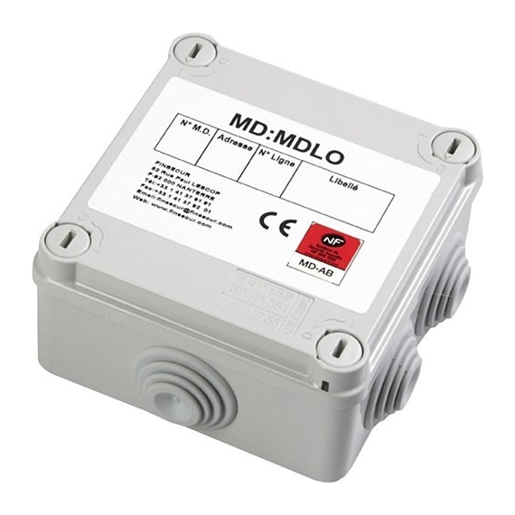 Module déporté adressable pour ligne collective ouverte. 1 module par DAS à émission. Maximum 15 par ligne.